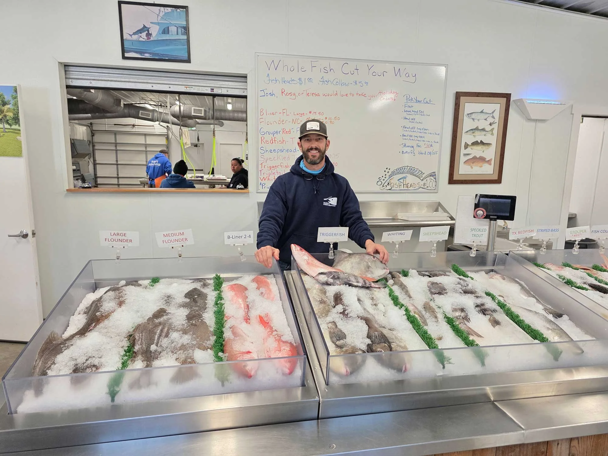 Step into Russo’s Fresh Seafood Bluffton and you’re greeted by an abundant display of fresh fish on ice and a clear view into our immaculate open cutting area. Our commitment to quality and cleanliness is on full display.
